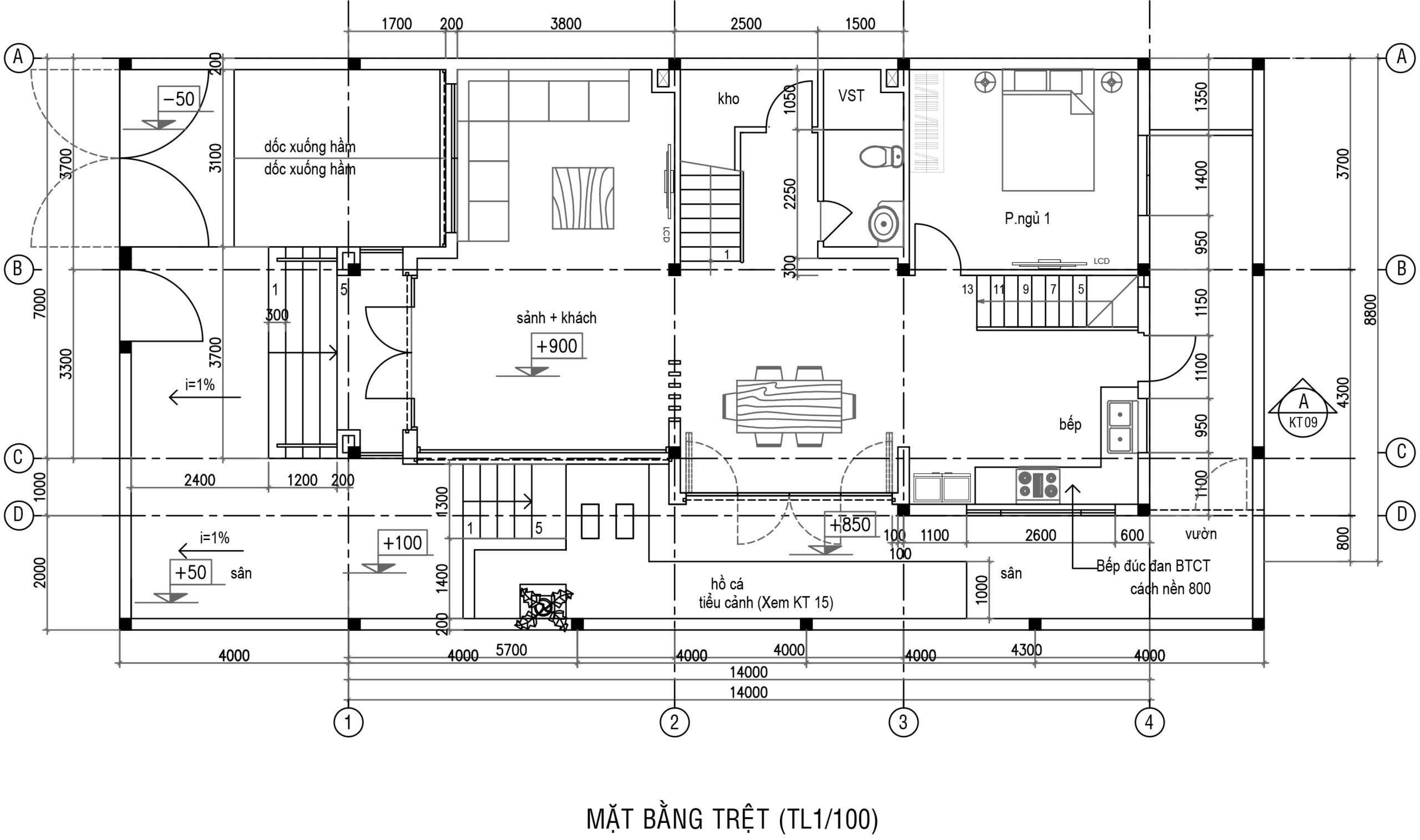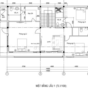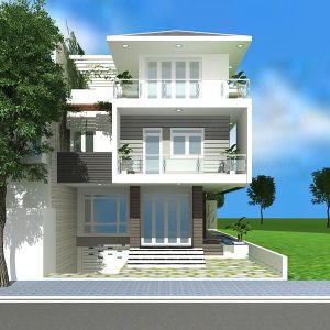 Quy mô xây dựng: 1 tầng hầm + trệt + 2 lầu + mái BTCT lợp ngói