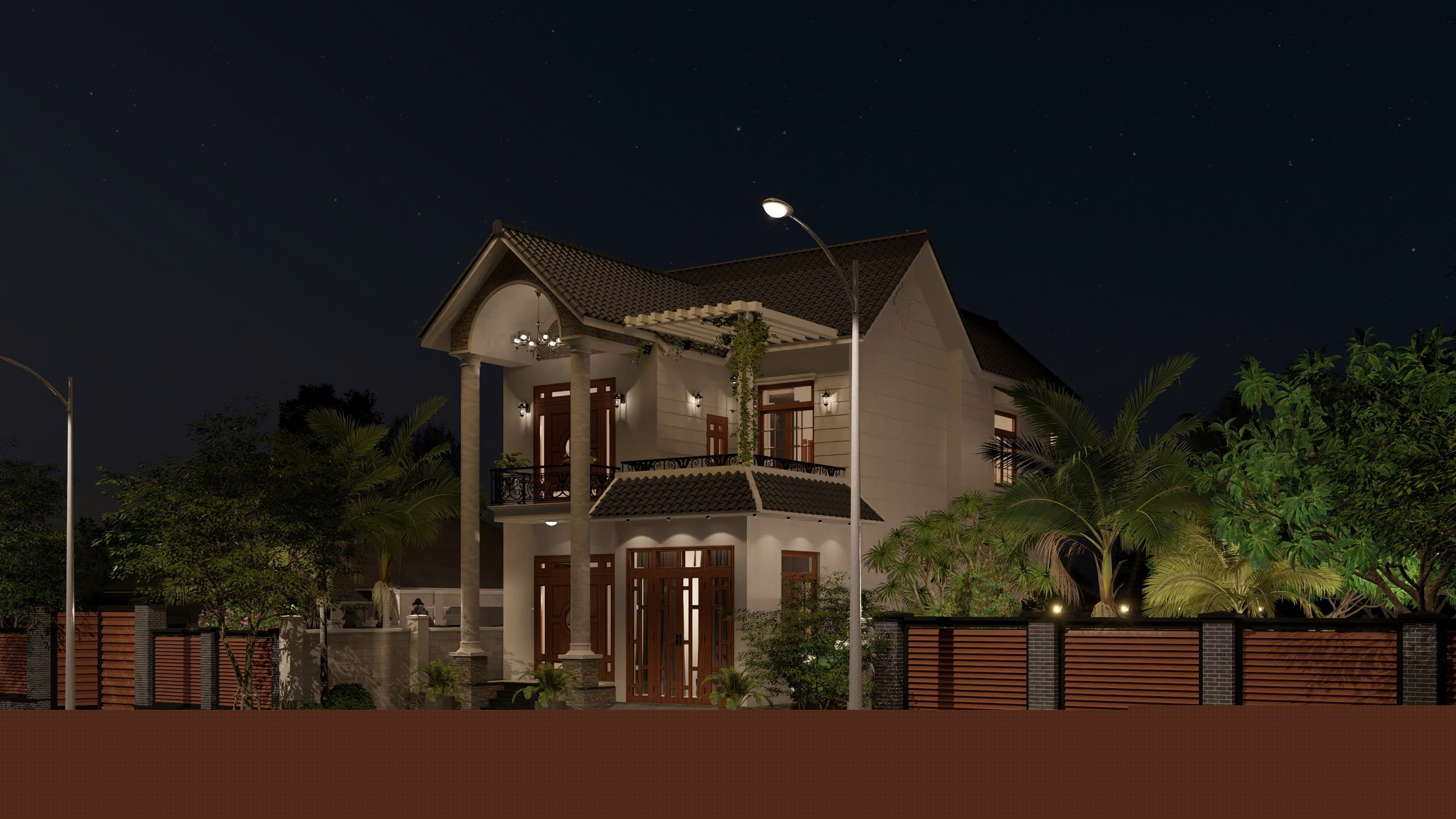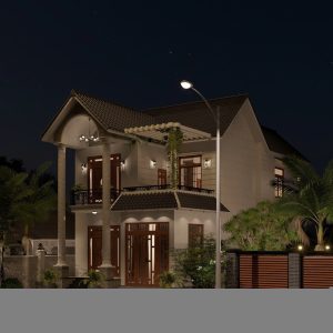 Tầng 2 có diện tích sàn xây dựng là 134.7m2, là nơi gia chủ bố trí phòng thờ, 1 phòng ngủ, phòng giặt, sân phơi và một khoảng sân thượng để trồng cây xanh và thư giản