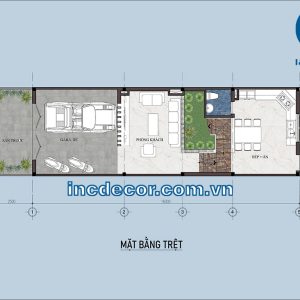 Quy mô xây dựng: trệt + 2 lầu + sân thượng + mái BTCT