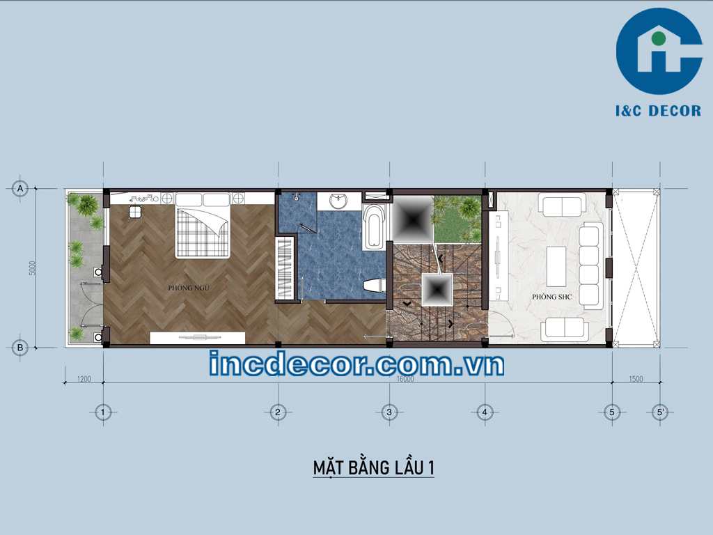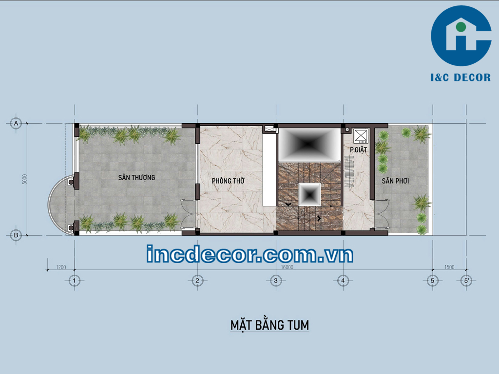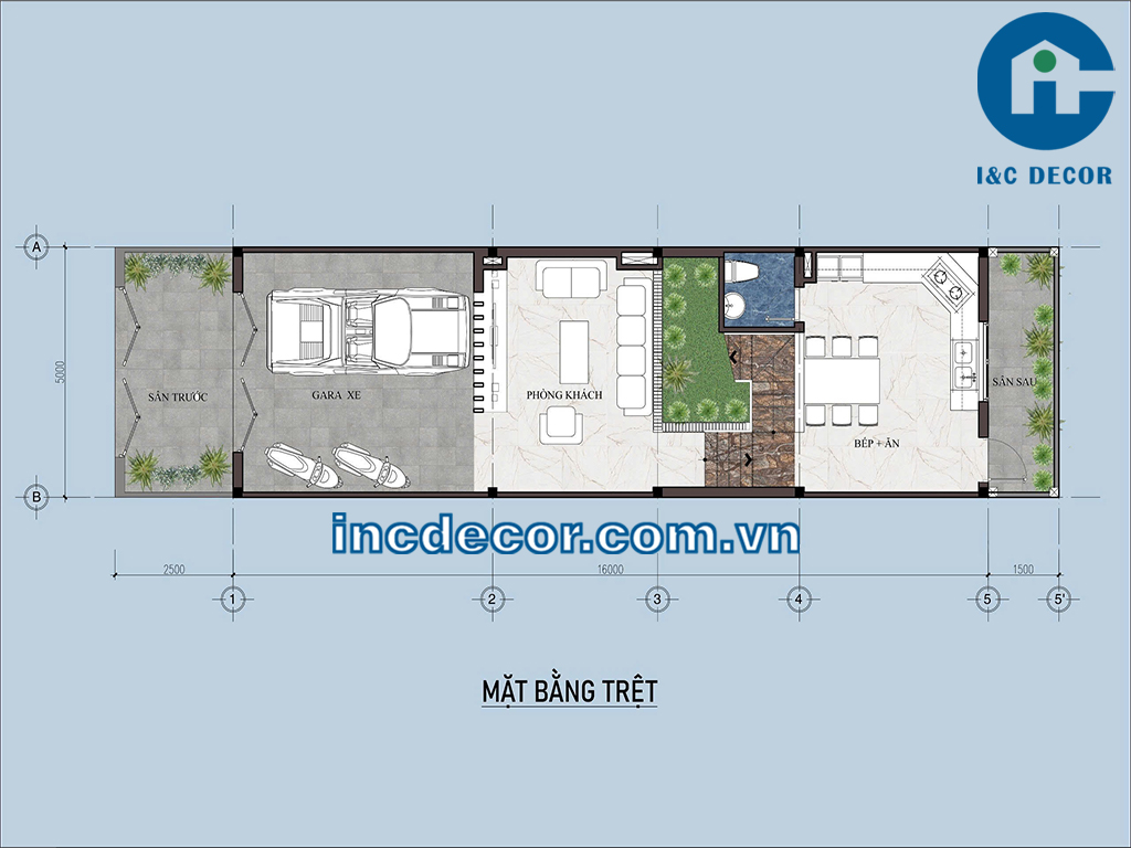 Diện tích đất xây dựng: 5mx20m = 100m2