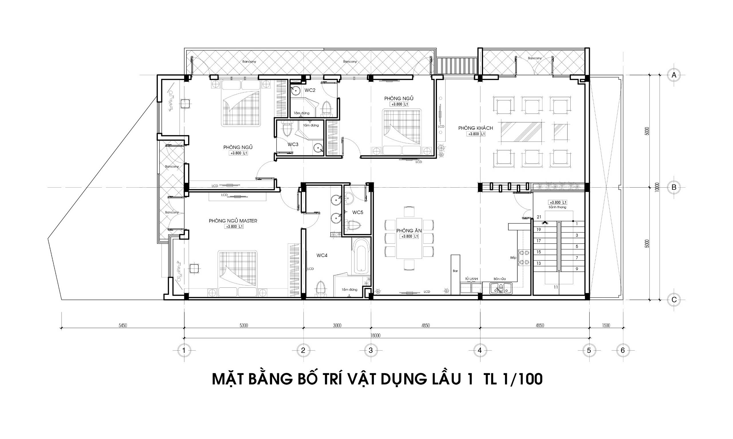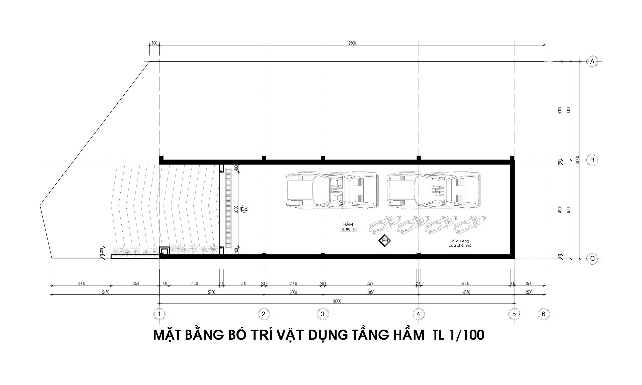Quy mô xây dựng: hầm + trệt + 2 lầu + sân thượng + mái BTCT