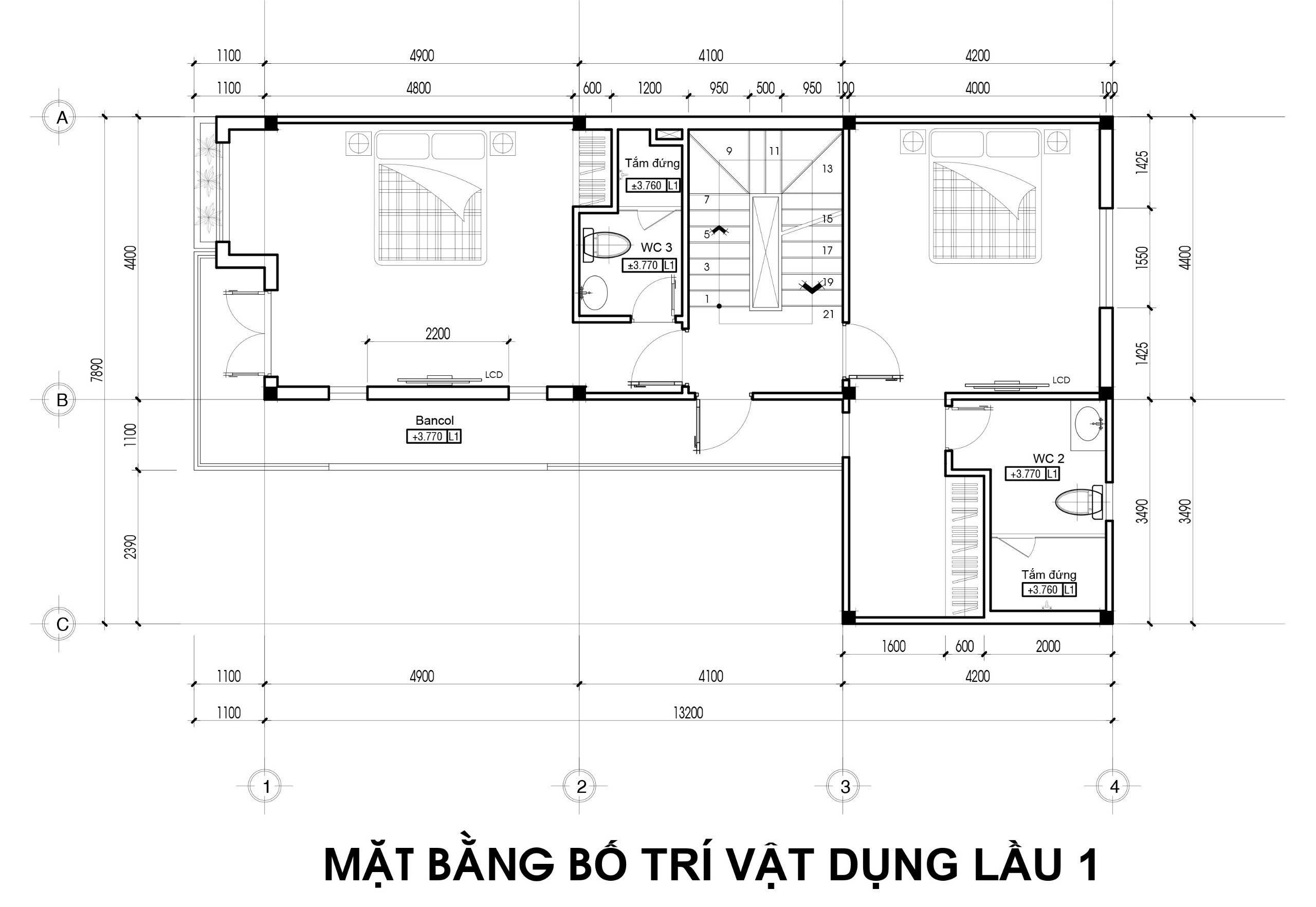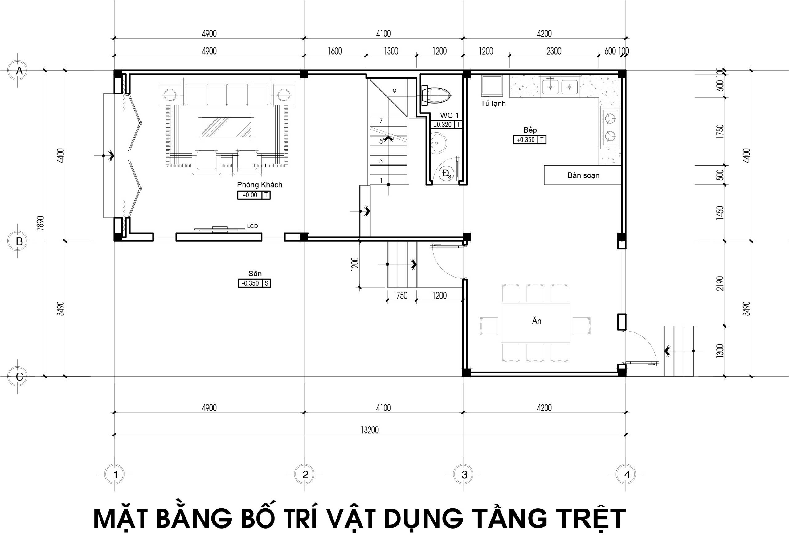 Diện tích xây dựng: 7.89mx13.2m