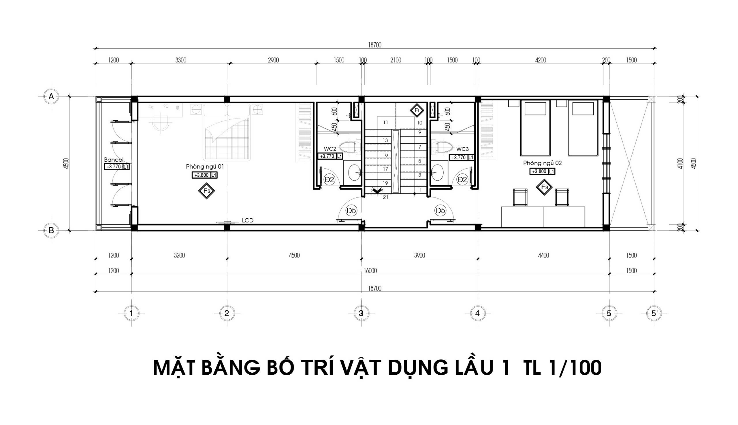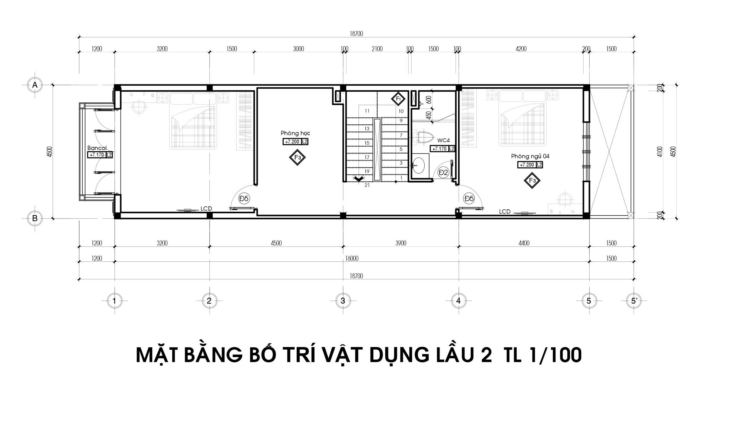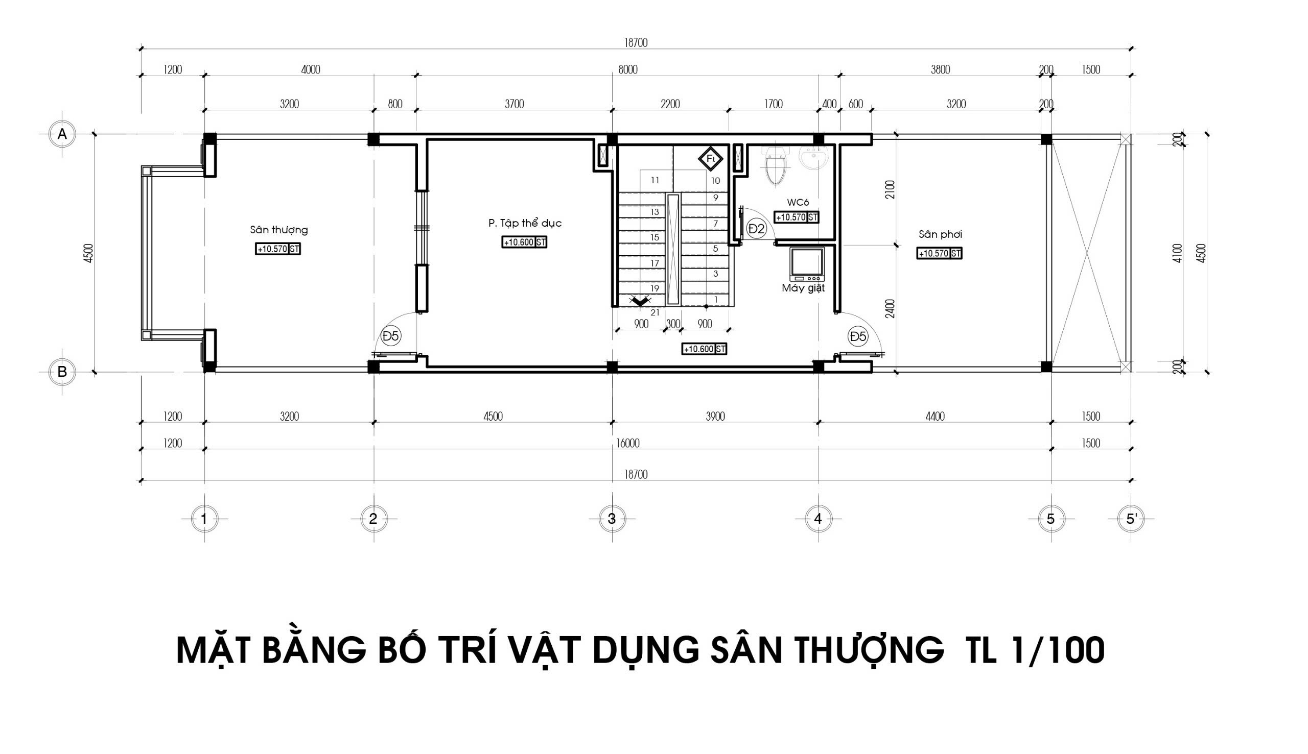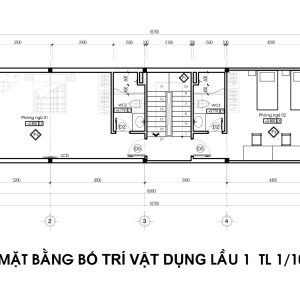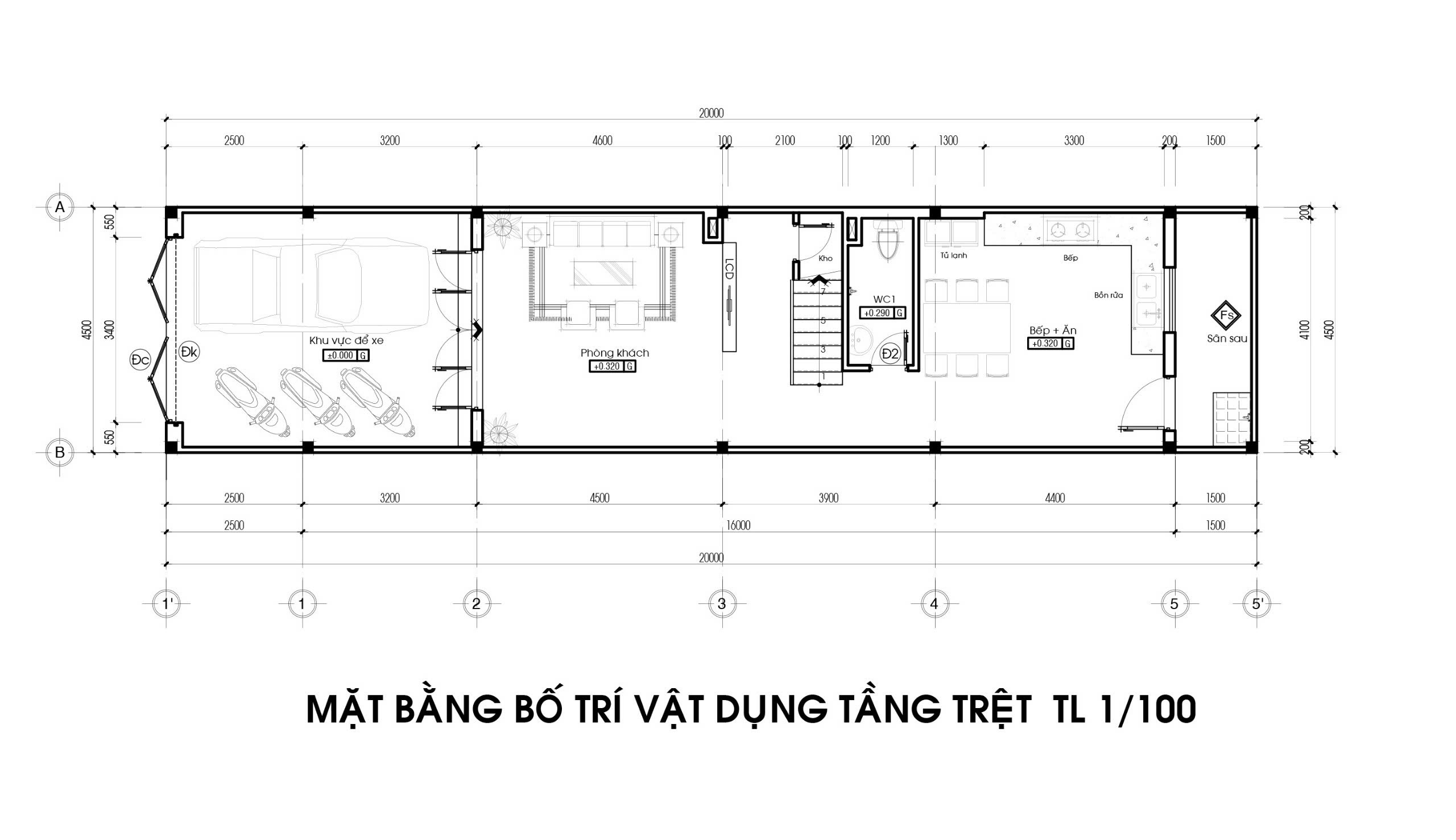 Quy mô xây dựng: trệt + 2 lầu + sân thượng + mái BTCT