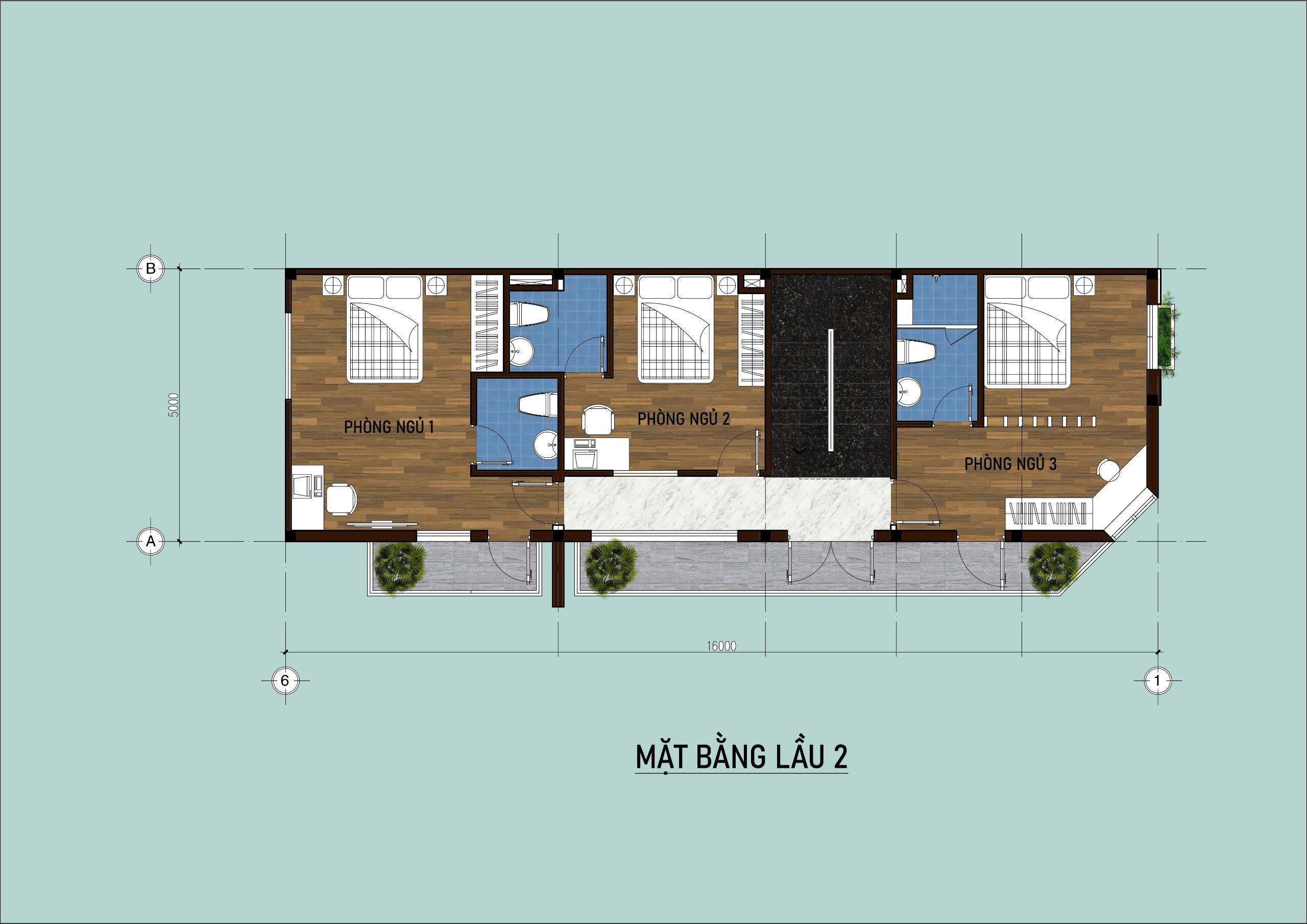 Quy mô xây dựng: trệt + 2 lầu + sân thượng + mái BTCT