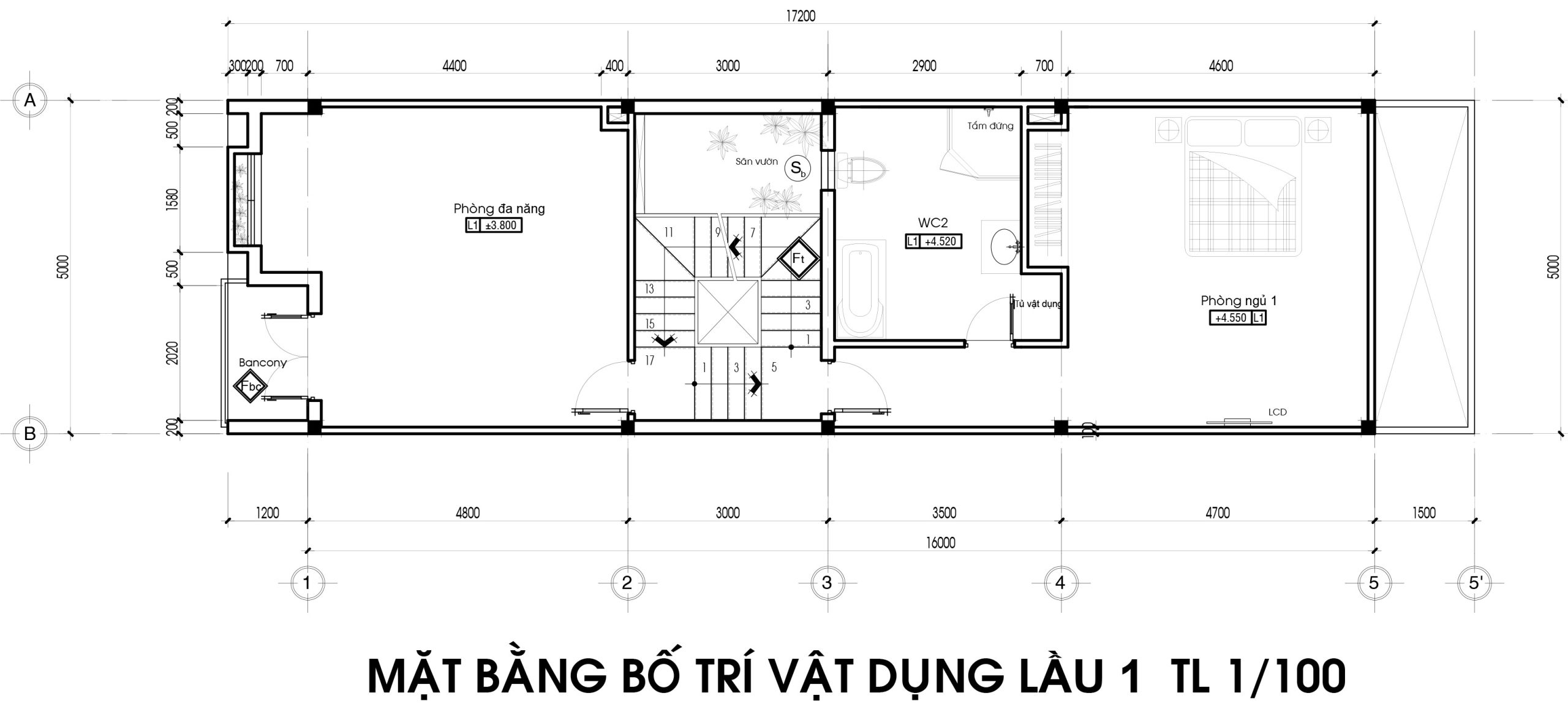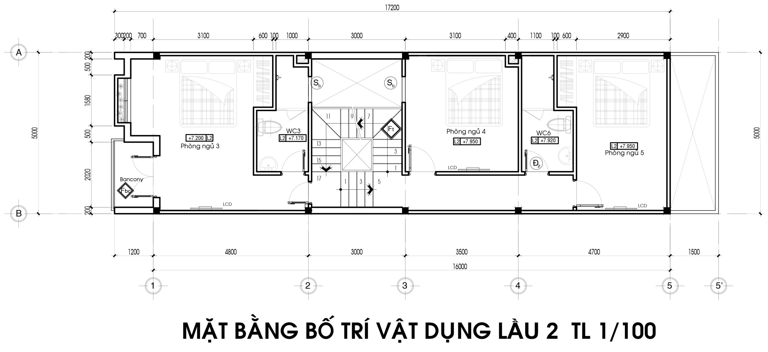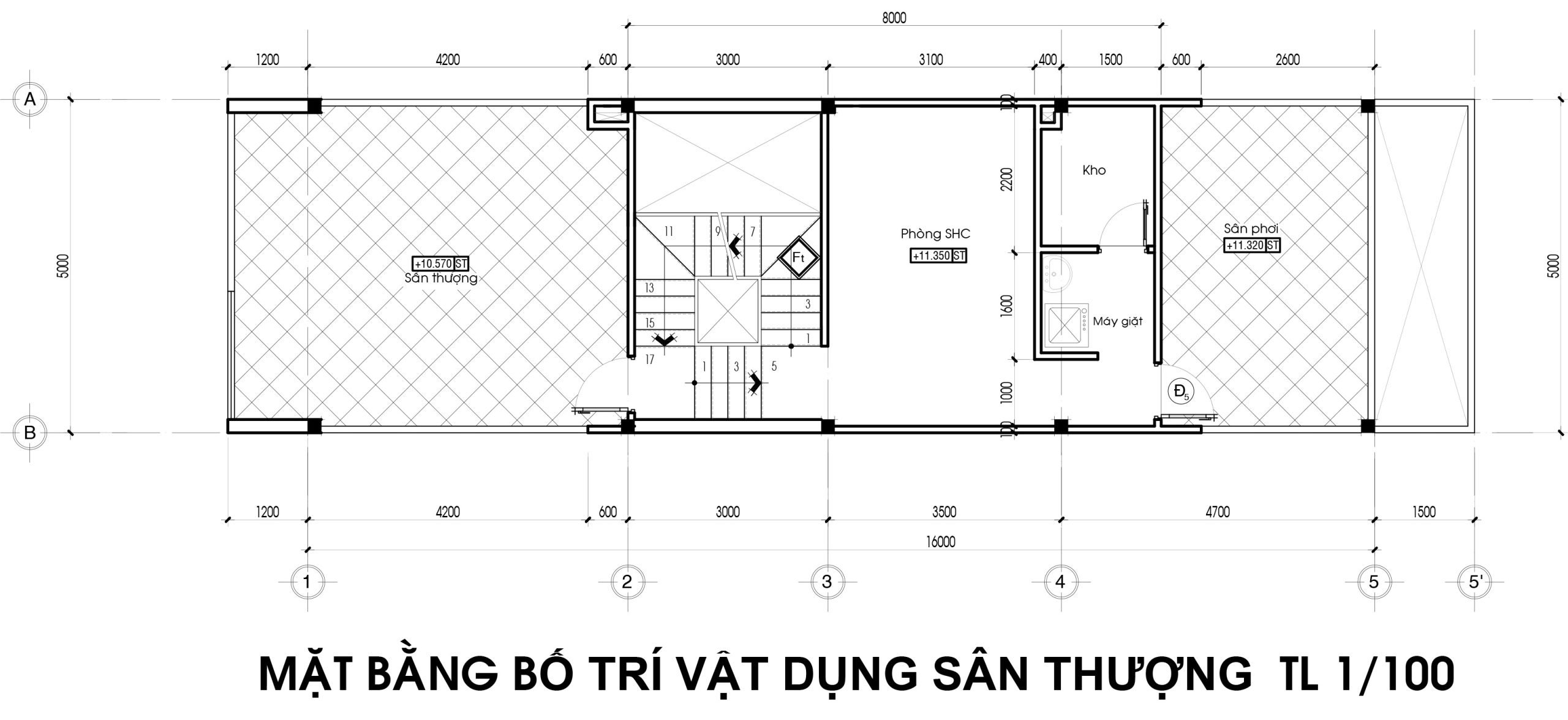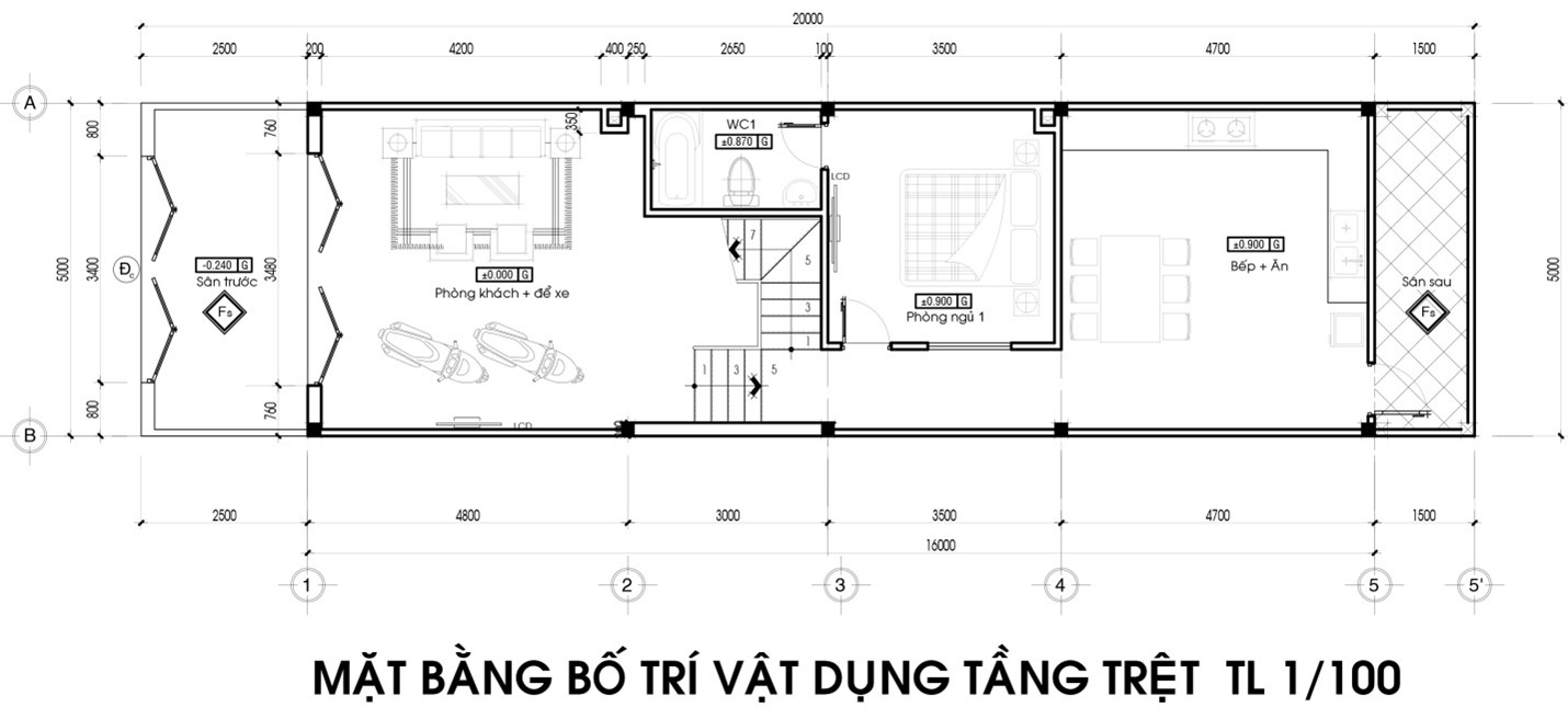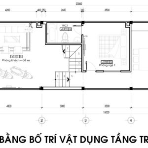 Quy mô xây dựng: trệt + 2 lầu + sân thượng + mái BTCT