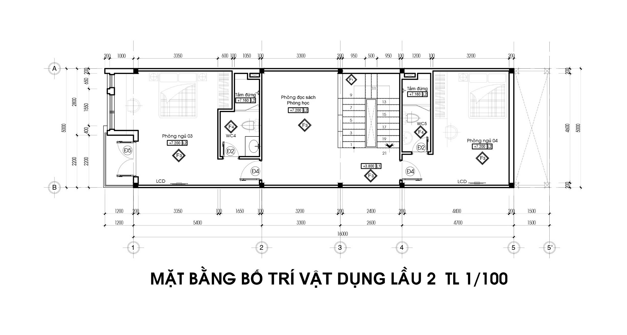 Quy mô xây dựng: trệt + 2 lầu + sân thượng + mái BTCT